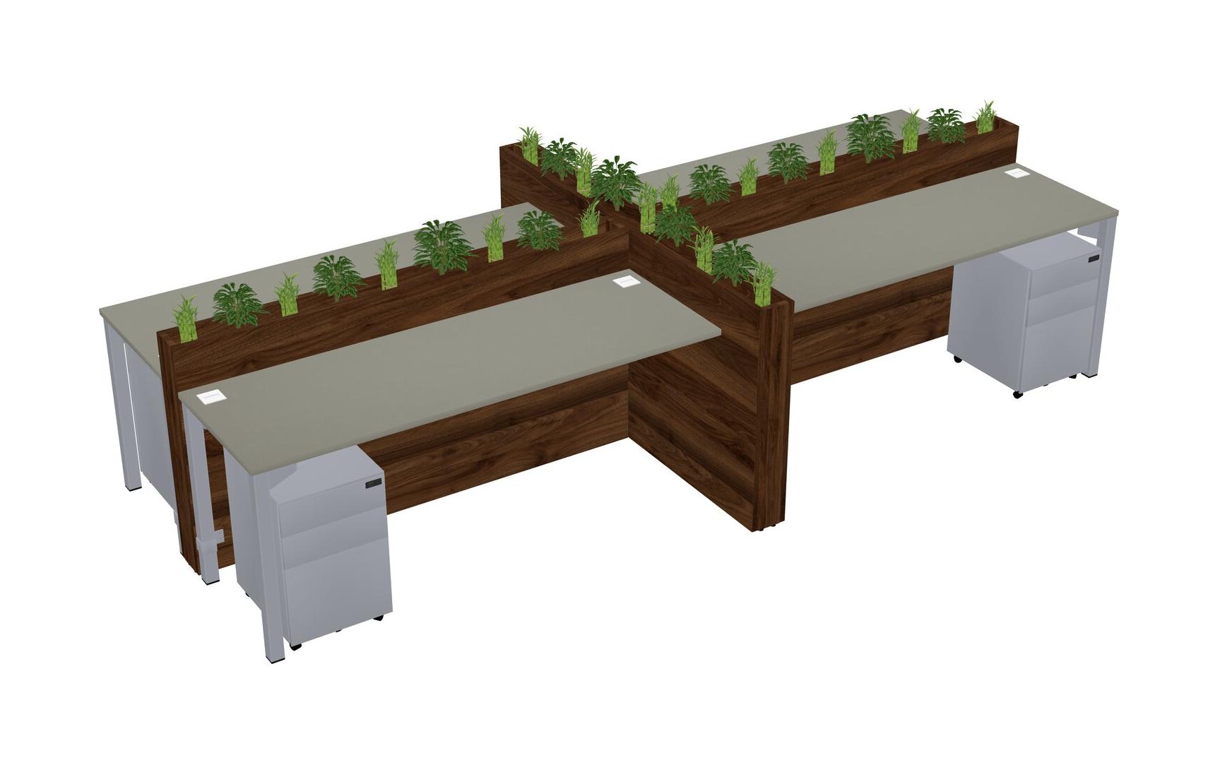 Grey Shadows Rectangular Shared Office Desk For 4 Persons Let Nature Help Flourish Your Productivity The Base Comes With An Adjustable Shelf To Provide Space For Pots (Pots & Plants Sold Separately)