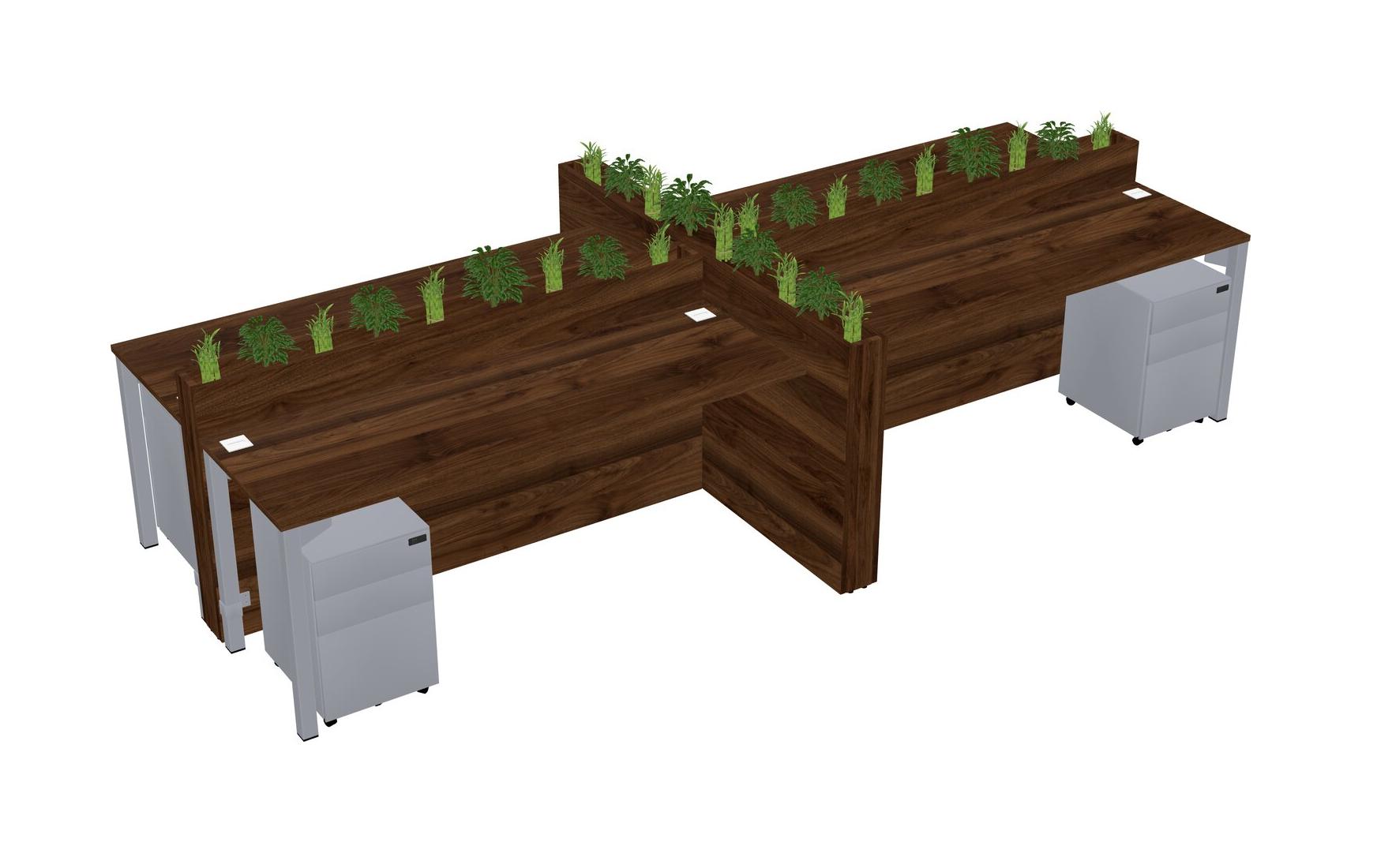 Columbia Walnut Rectangular Shared Office Desk For 4 Persons Let Nature Help Flourish Your Productivity The Base Comes With An Adjustable Shelf To Provide Space For Pots (Pots & Plants Sold Separately)