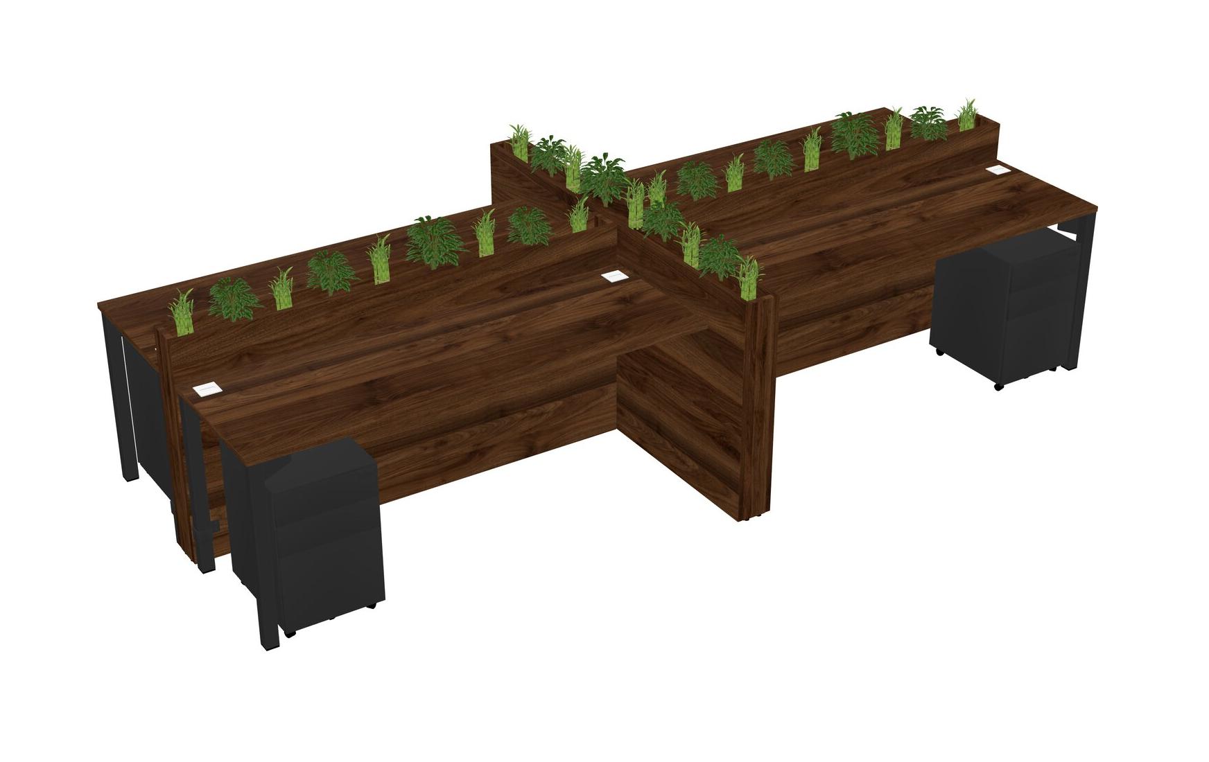 Columbia Walnut Rectangular Shared Office Desk For 4 Persons Let Nature Help Flourish Your Productivity The Base Comes With An Adjustable Shelf To Provide Space For Pots (Pots & Plants Sold Separately)