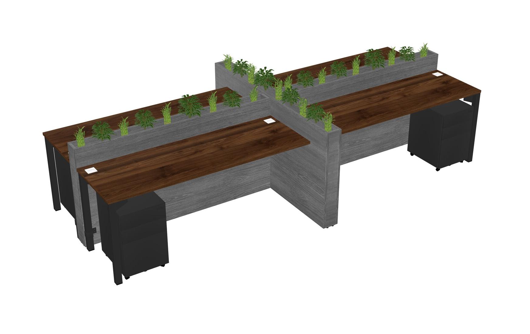 Columbia Walnut Rectangular Shared Office Desk For 4 Persons Let Nature Help Flourish Your Productivity The Base Comes With An Adjustable Shelf To Provide Space For Pots (Pots & Plants Sold Separately)