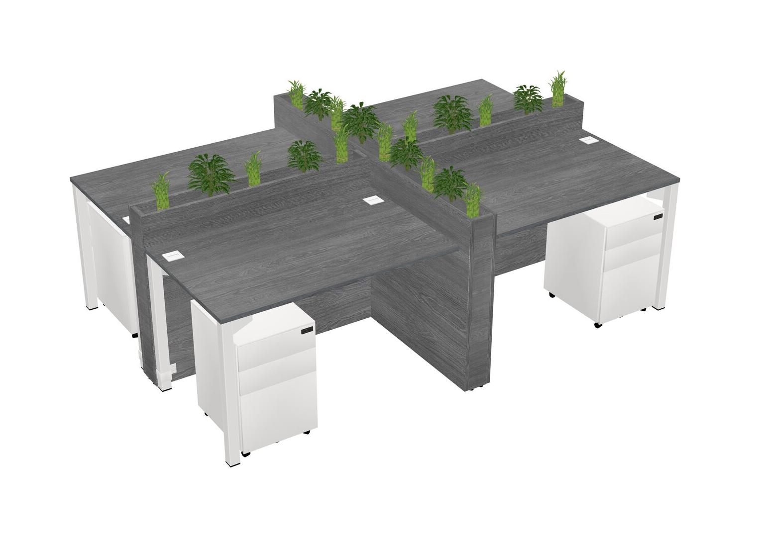 Grey Rectangular Shared Office Desk For 4 Persons Let Nature Help Flourish Your Productivity The Base Comes With An Adjustable Shelf To Provide Space For Pots (Pots & Plants Sold Separately)