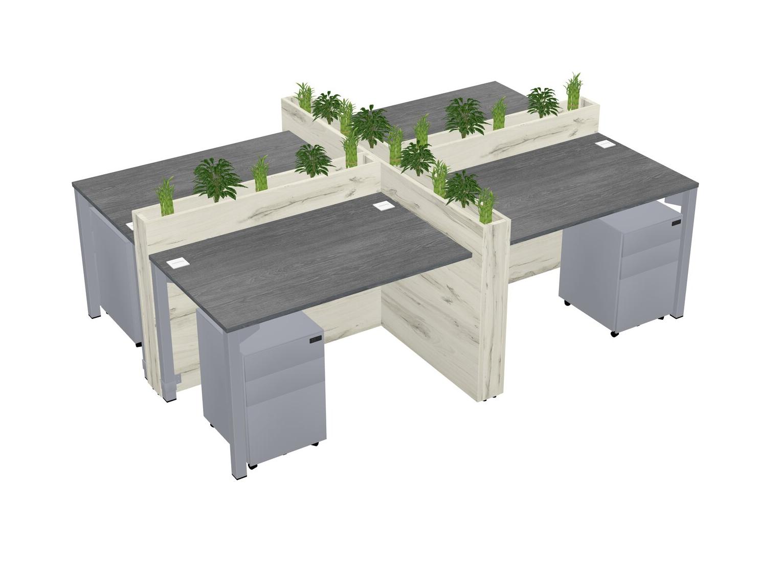Grey Rectangular Shared Office Desk For 4 Persons Let Nature Help Flourish Your Productivity The Base Comes With An Adjustable Shelf To Provide Space For Pots (Pots & Plants Sold Separately)