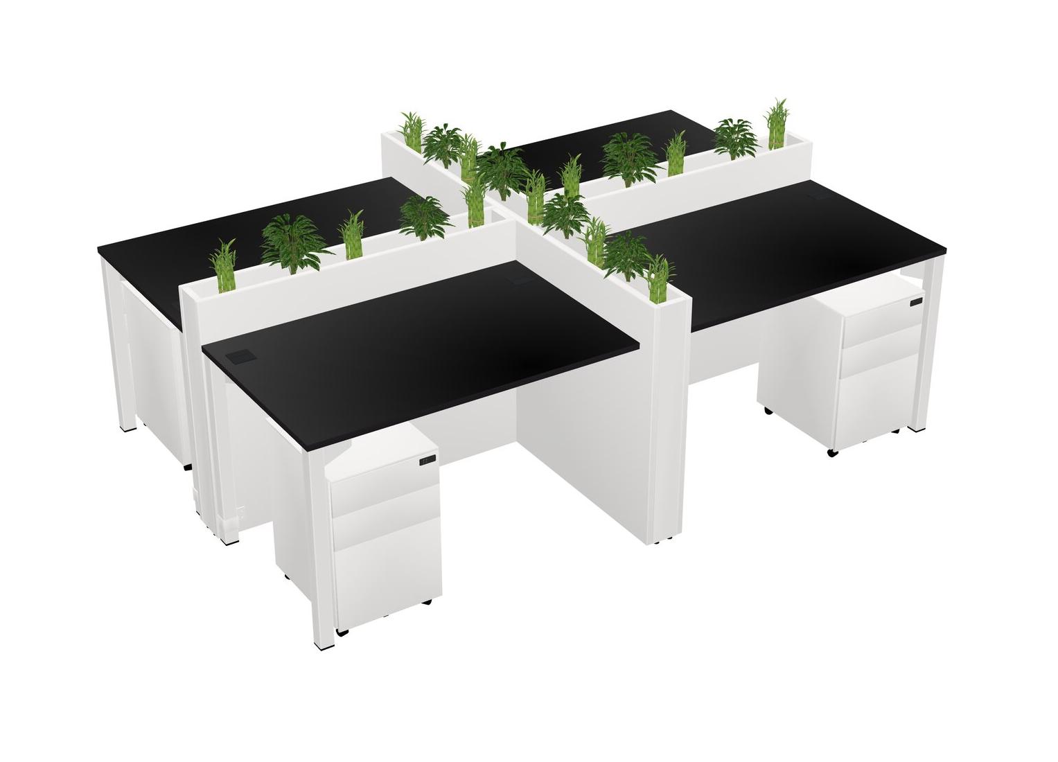 Black Rectangular Shared Office Desk For 4 Persons Let Nature Help Flourish Your Productivity The Base Comes With An Adjustable Shelf To Provide Space For Pots (Pots & Plants Sold Separately)