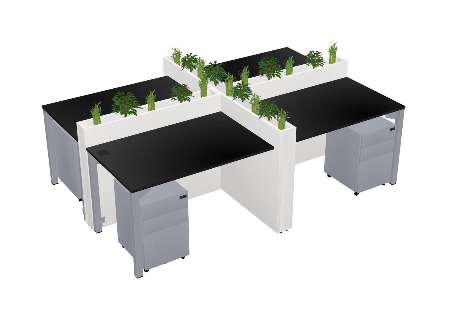 Black Rectangular Shared Office Desk For 4 Persons Let Nature Help Flourish Your Productivity The Base Comes With An Adjustable Shelf To Provide Space For Pots (Pots & Plants Sold Separately)