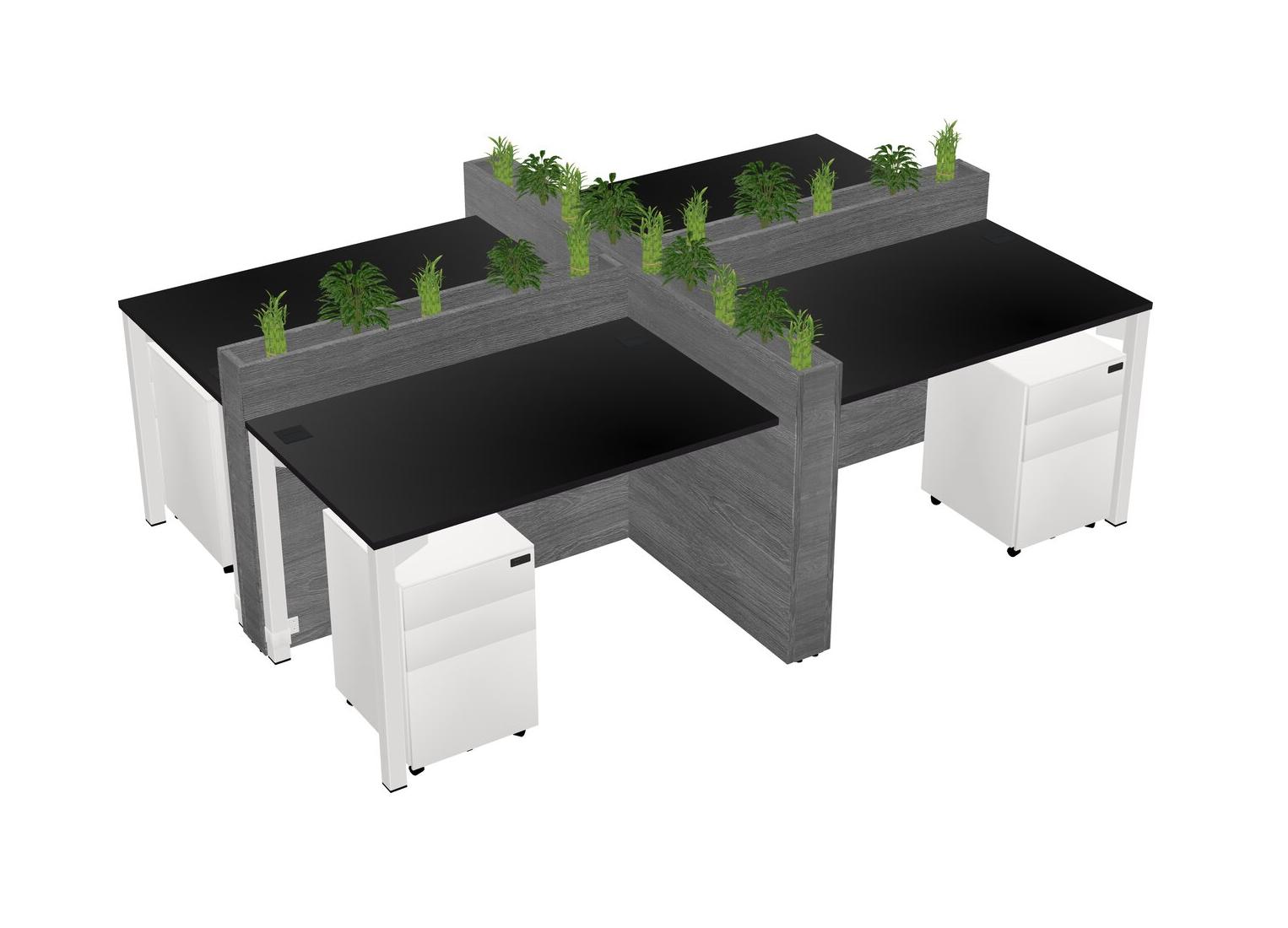 Black Rectangular Shared Office Desk For 4 Persons Let Nature Help Flourish Your Productivity The Base Comes With An Adjustable Shelf To Provide Space For Pots (Pots & Plants Sold Separately)