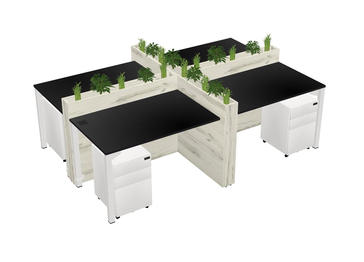 Black Rectangular Shared Office Desk For 4 Persons Let Nature Help Flourish Your Productivity The Base Comes With An Adjustable Shelf To Provide Space For Pots (Pots & Plants Sold Separately)