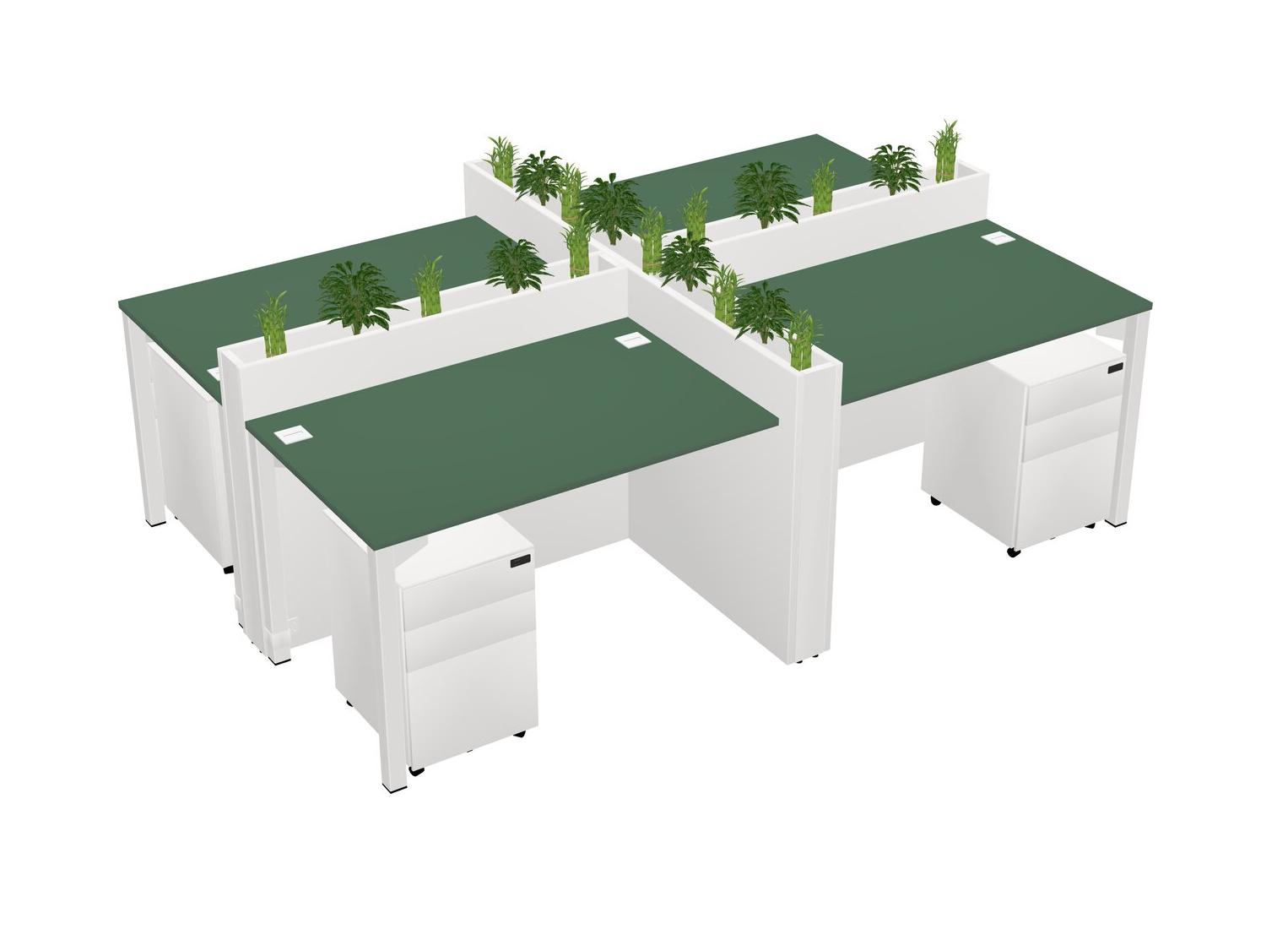Green Rectangular Shared Office Desk For 4 Persons Let Nature Help Flourish Your Productivity The Base Comes With An Adjustable Shelf To Provide Space For Pots (Pots & Plants Sold Separately)