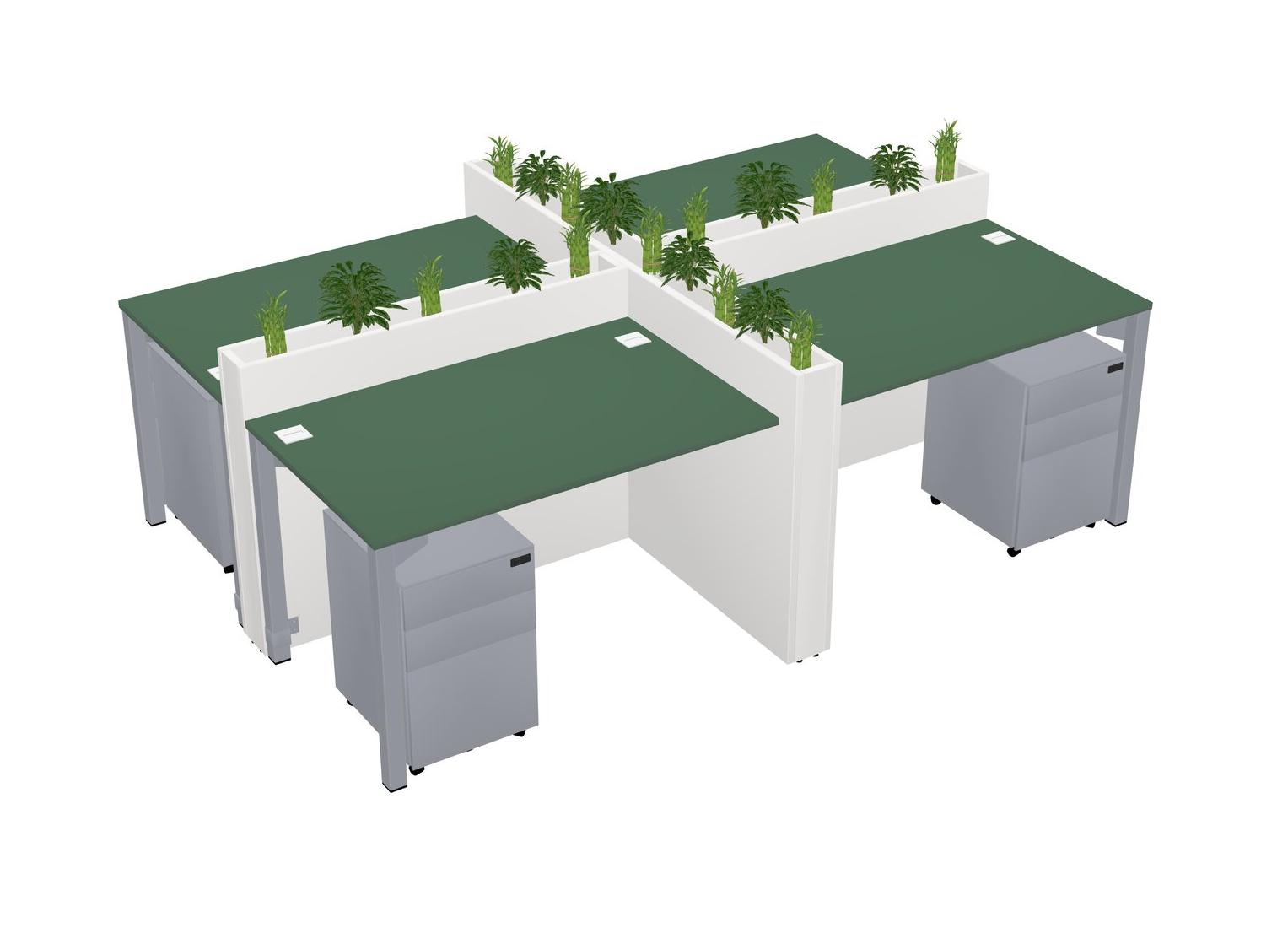 Green Rectangular Shared Office Desk For 4 Persons Let Nature Help Flourish Your Productivity The Base Comes With An Adjustable Shelf To Provide Space For Pots (Pots & Plants Sold Separately)