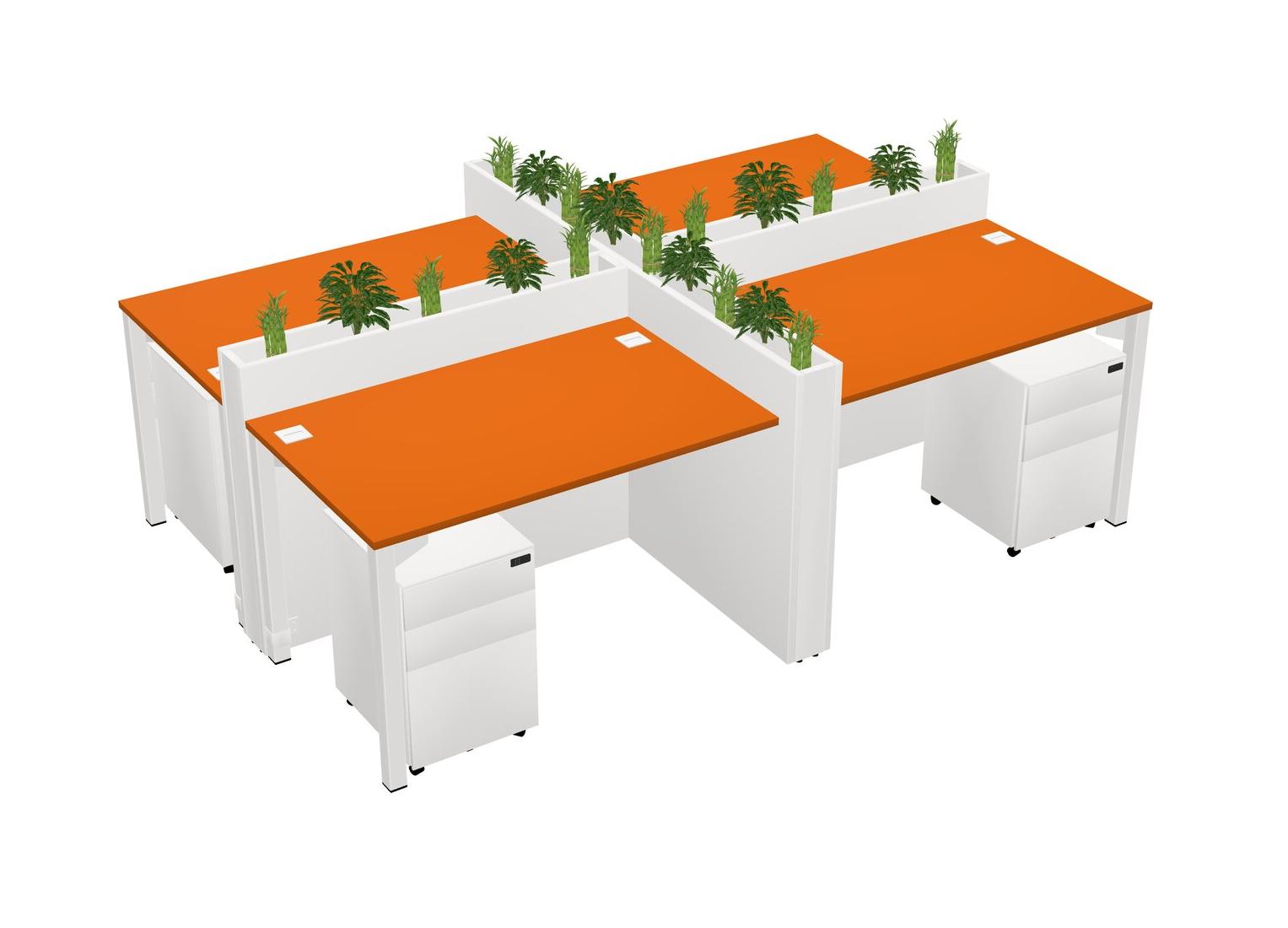 Orange Rectangular Shared Office Desk For 4 Persons Let Nature Help Flourish Your Productivity The Base Comes With An Adjustable Shelf To Provide Space For Pots (Pots & Plants Sold Separately)