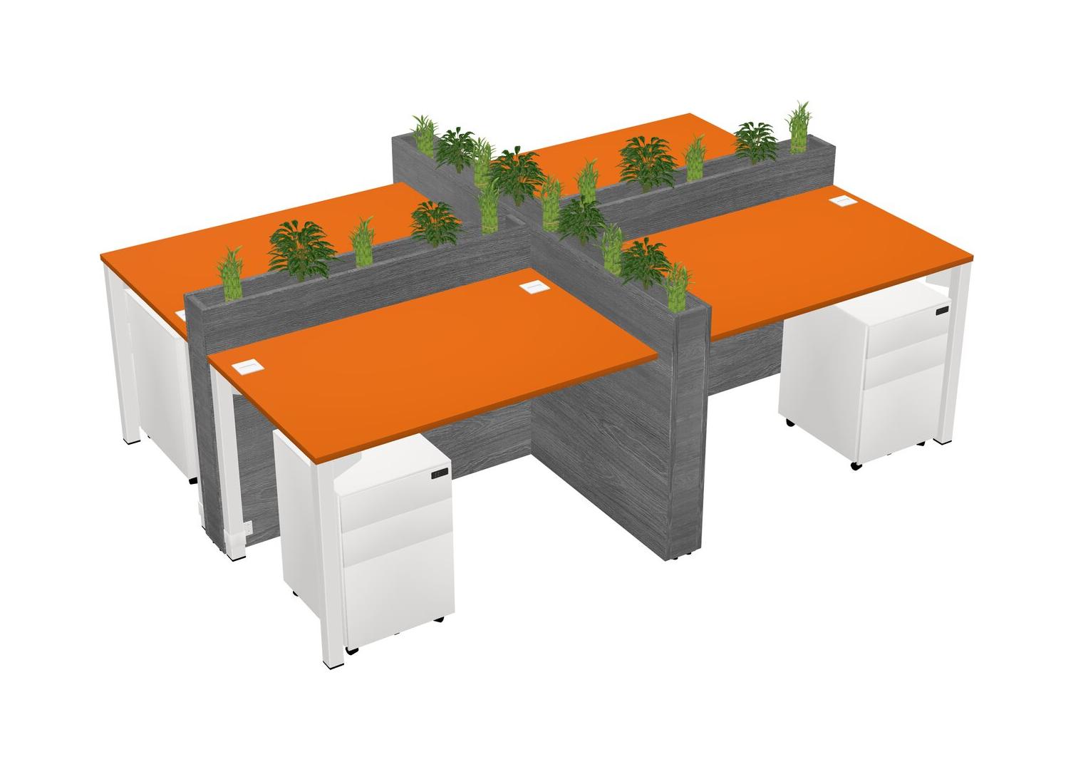Orange Rectangular Shared Office Desk For 4 Persons Let Nature Help Flourish Your Productivity The Base Comes With An Adjustable Shelf To Provide Space For Pots (Pots & Plants Sold Separately)
