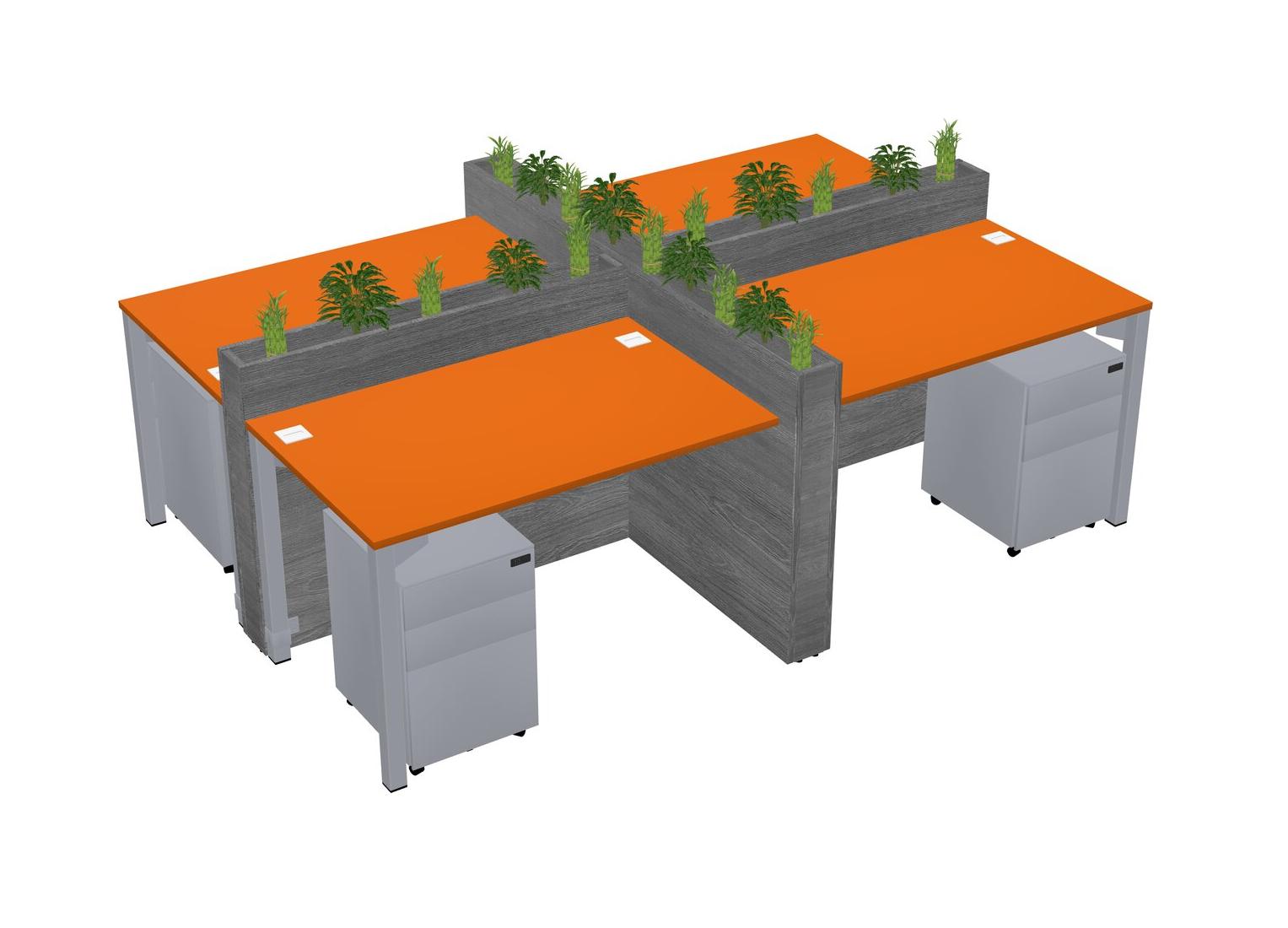 Orange Rectangular Shared Office Desk For 4 Persons Let Nature Help Flourish Your Productivity The Base Comes With An Adjustable Shelf To Provide Space For Pots (Pots & Plants Sold Separately)