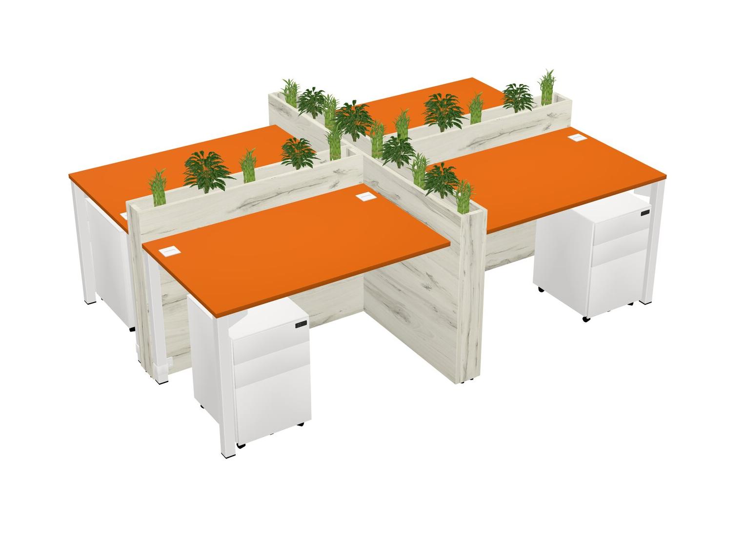 Orange Rectangular Shared Office Desk For 4 Persons Let Nature Help Flourish Your Productivity The Base Comes With An Adjustable Shelf To Provide Space For Pots (Pots & Plants Sold Separately)