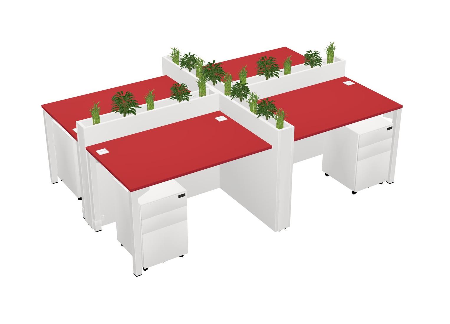 Prism Red Rectangular Shared Office Desk For 4 Persons Let Nature Help Flourish Your Productivity The Base Comes With An Adjustable Shelf To Provide Space For Pots (Pots & Plants Sold Separately)