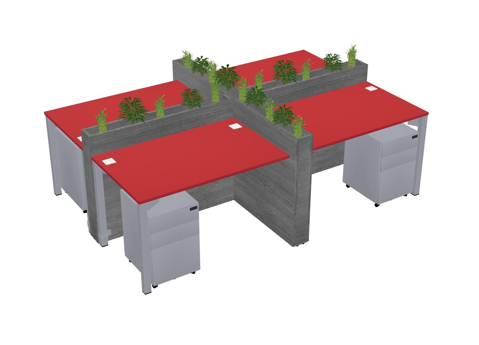 Prism Red Rectangular Shared Office Desk For 4 Persons Let Nature Help Flourish Your Productivity The Base Comes With An Adjustable Shelf To Provide Space For Pots (Pots & Plants Sold Separately)
