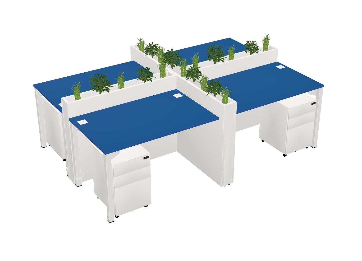Prism Blue Rectangular Shared Office Desk For 4 Persons Let Nature Help Flourish Your Productivity The Base Comes With An Adjustable Shelf To Provide Space For Pots (Pots & Plants Sold Separately)