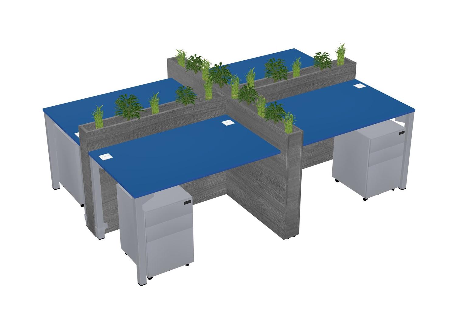 Prism Blue Rectangular Shared Office Desk For 4 Persons Let Nature Help Flourish Your Productivity The Base Comes With An Adjustable Shelf To Provide Space For Pots (Pots & Plants Sold Separately)