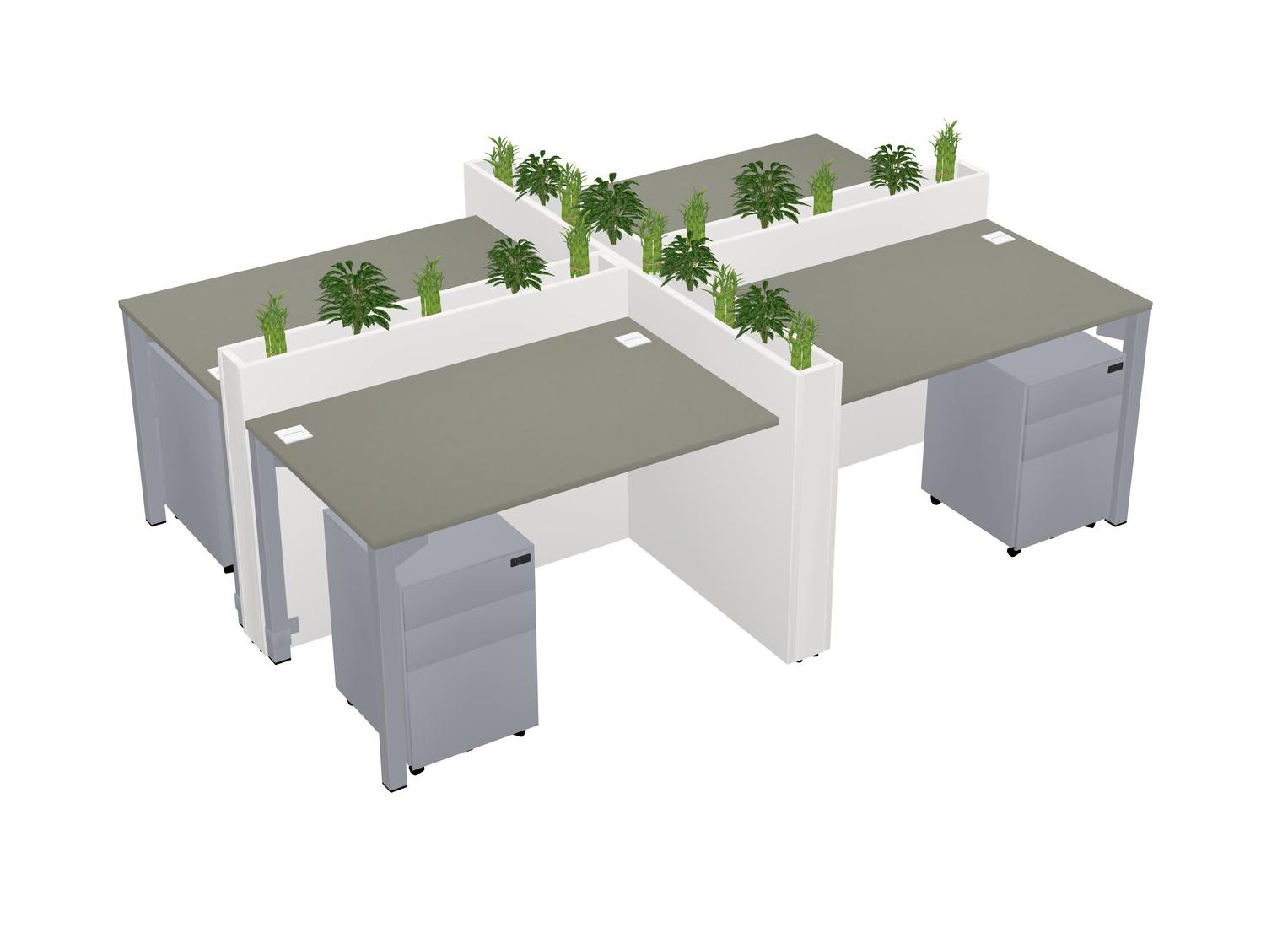 Grey Shadows Rectangular Shared Office Desk For 4 Persons Let Nature Help Flourish Your Productivity The Base Comes With An Adjustable Shelf To Provide Space For Pots (Pots & Plants Sold Separately)
