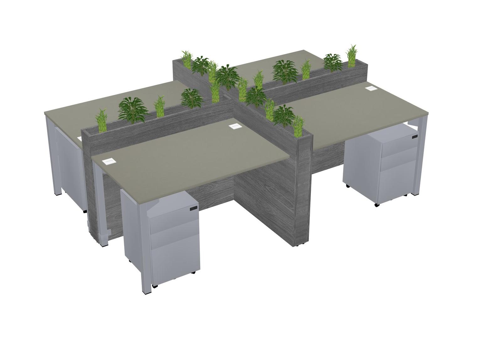 Grey Shadows Rectangular Shared Office Desk For 4 Persons Let Nature Help Flourish Your Productivity The Base Comes With An Adjustable Shelf To Provide Space For Pots (Pots & Plants Sold Separately)