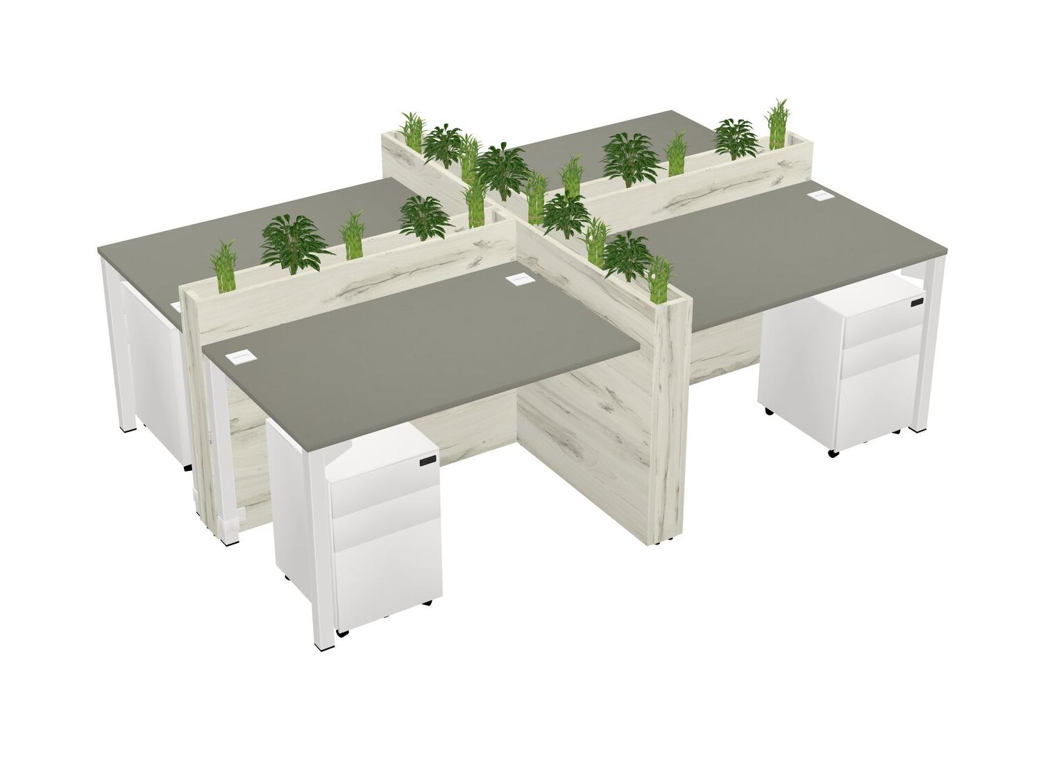 Grey Shadows Rectangular Shared Office Desk For 4 Persons Let Nature Help Flourish Your Productivity The Base Comes With An Adjustable Shelf To Provide Space For Pots (Pots & Plants Sold Separately)