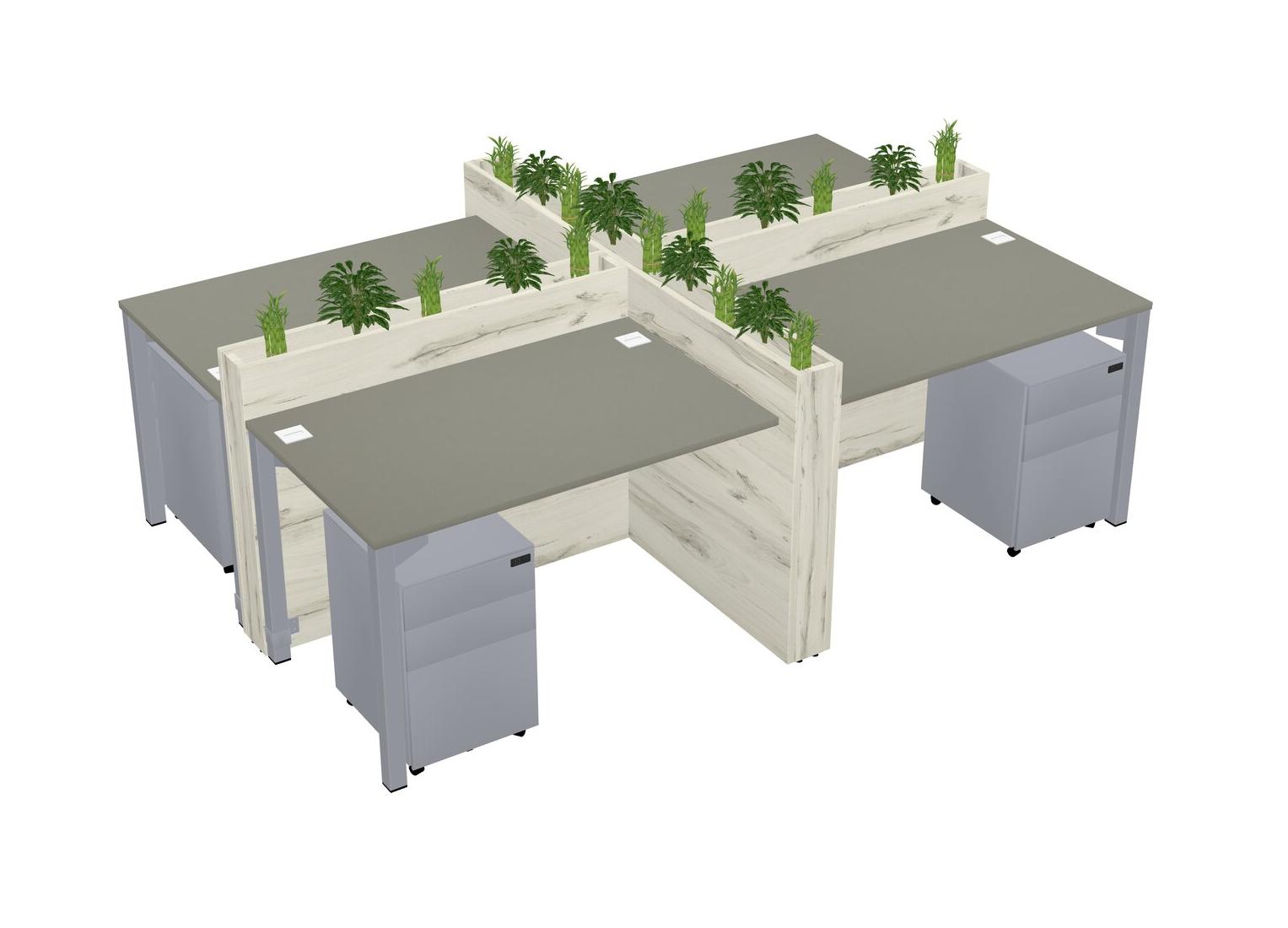 Grey Shadows Rectangular Shared Office Desk For 4 Persons Let Nature Help Flourish Your Productivity The Base Comes With An Adjustable Shelf To Provide Space For Pots (Pots & Plants Sold Separately)