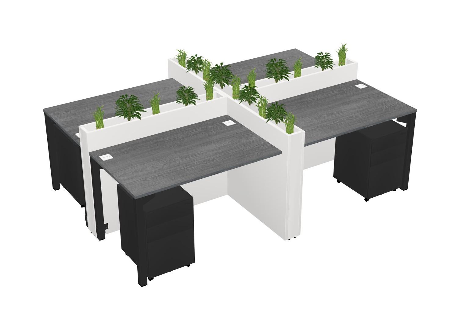 Grey Rectangular Shared Office Desk For 4 Persons Let Nature Help Flourish Your Productivity The Base Comes With An Adjustable Shelf To Provide Space For Pots (Pots & Plants Sold Separately)