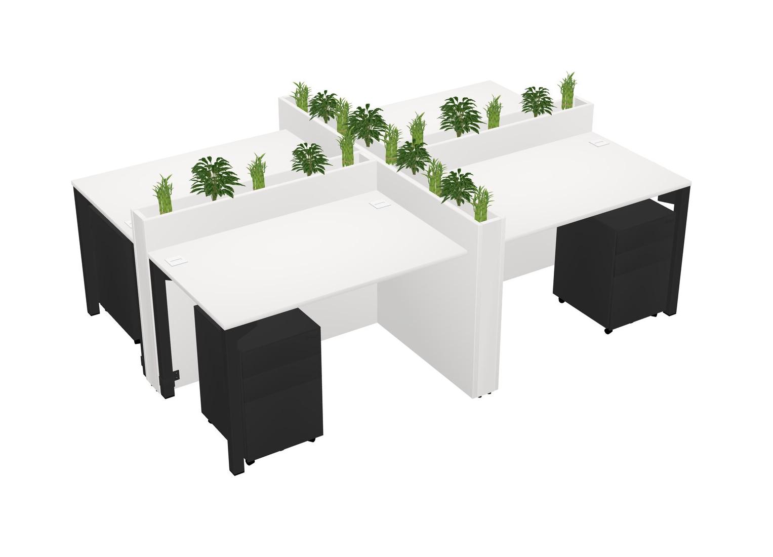 White Rectangular Shared Office Desk For 4 Persons Let Nature Help Flourish Your Productivity The Base Comes With An Adjustable Shelf To Provide Space For Pots (Pots & Plants Sold Separately)
