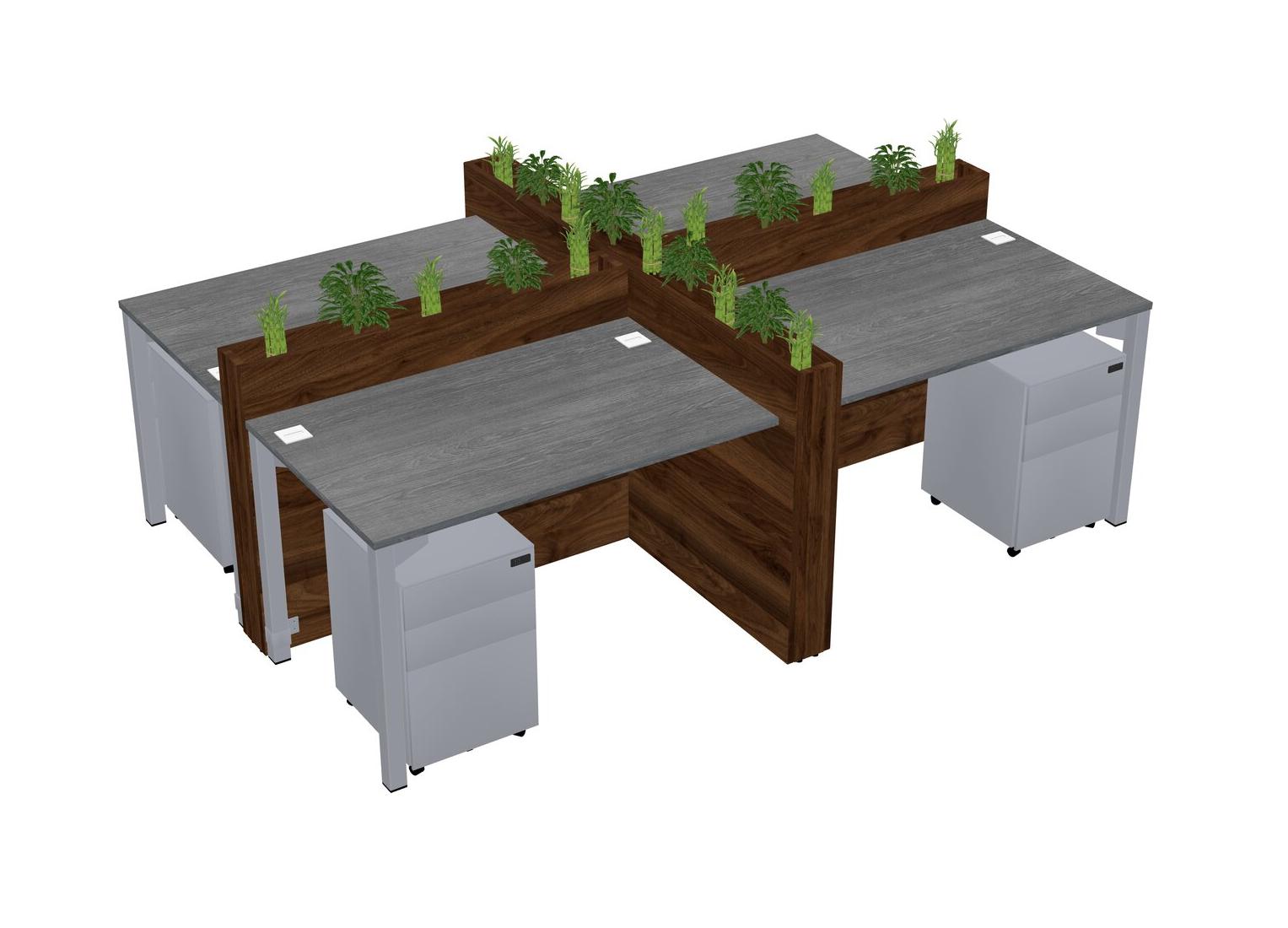 Grey Rectangular Shared Office Desk For 4 Persons Let Nature Help Flourish Your Productivity The Base Comes With An Adjustable Shelf To Provide Space For Pots (Pots & Plants Sold Separately)