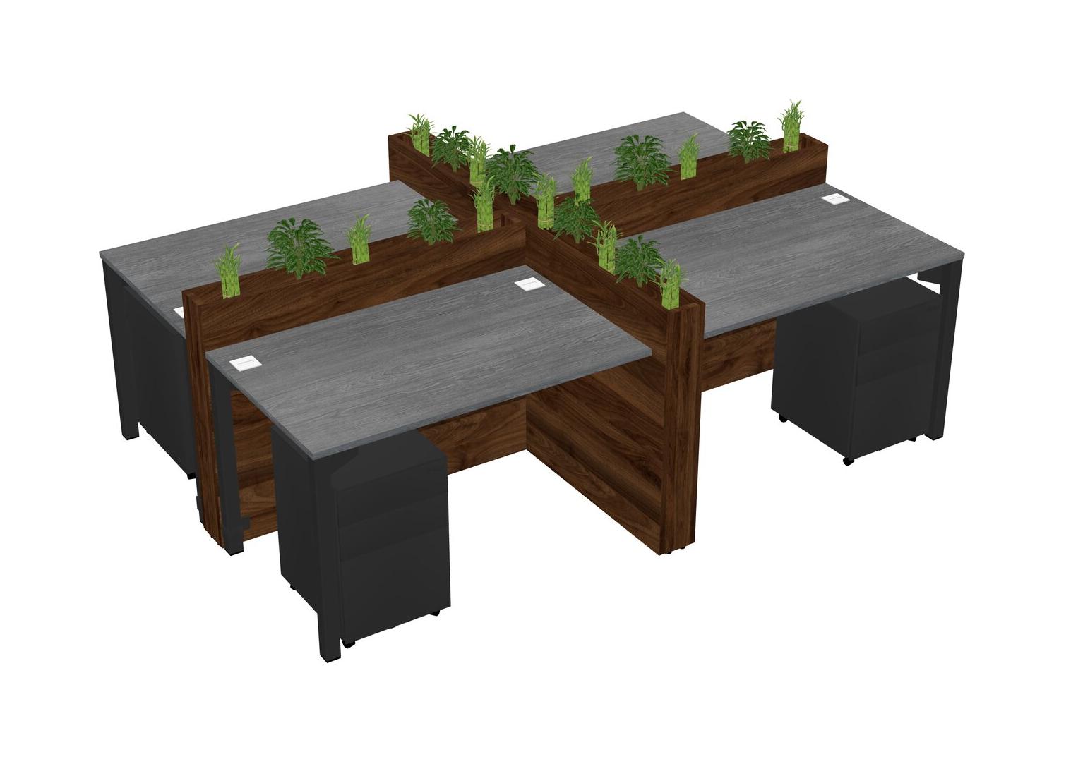 Grey Rectangular Shared Office Desk For 4 Persons Let Nature Help Flourish Your Productivity The Base Comes With An Adjustable Shelf To Provide Space For Pots (Pots & Plants Sold Separately)