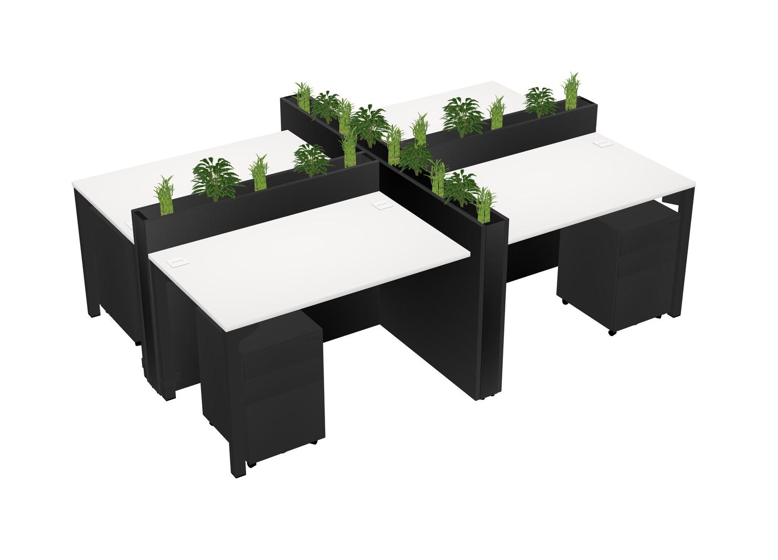 White Rectangular Shared Office Desk For 4 Persons Let Nature Help Flourish Your Productivity The Base Comes With An Adjustable Shelf To Provide Space For Pots (Pots & Plants Sold Separately)