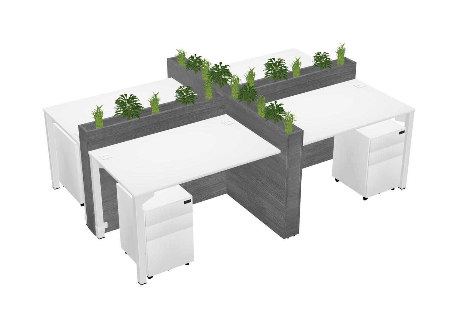 White Rectangular Shared Office Desk For 4 Persons Let Nature Help Flourish Your Productivity The Base Comes With An Adjustable Shelf To Provide Space For Pots (Pots & Plants Sold Separately)