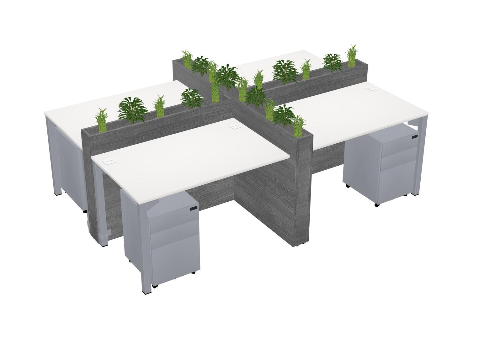 White Rectangular Shared Office Desk For 4 Persons Let Nature Help Flourish Your Productivity The Base Comes With An Adjustable Shelf To Provide Space For Pots (Pots & Plants Sold Separately)