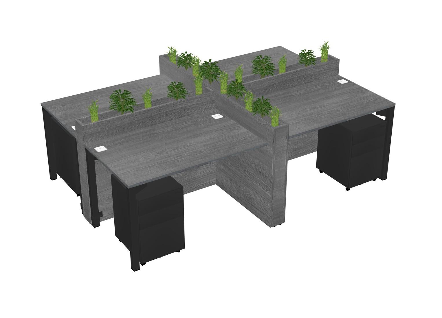 Grey Rectangular Shared Office Desk For 4 Persons Let Nature Help Flourish Your Productivity The Base Comes With An Adjustable Shelf To Provide Space For Pots (Pots & Plants Sold Separately)