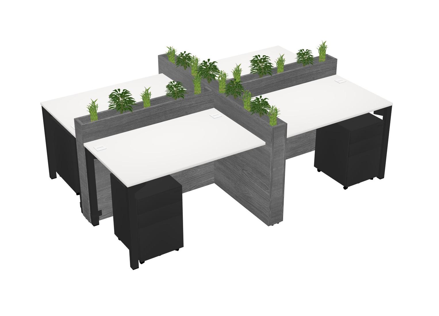 White Rectangular Shared Office Desk For 4 Persons Let Nature Help Flourish Your Productivity The Base Comes With An Adjustable Shelf To Provide Space For Pots (Pots & Plants Sold Separately)