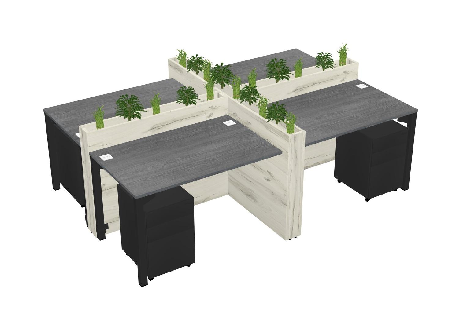 Grey Rectangular Shared Office Desk For 4 Persons Let Nature Help Flourish Your Productivity The Base Comes With An Adjustable Shelf To Provide Space For Pots (Pots & Plants Sold Separately)