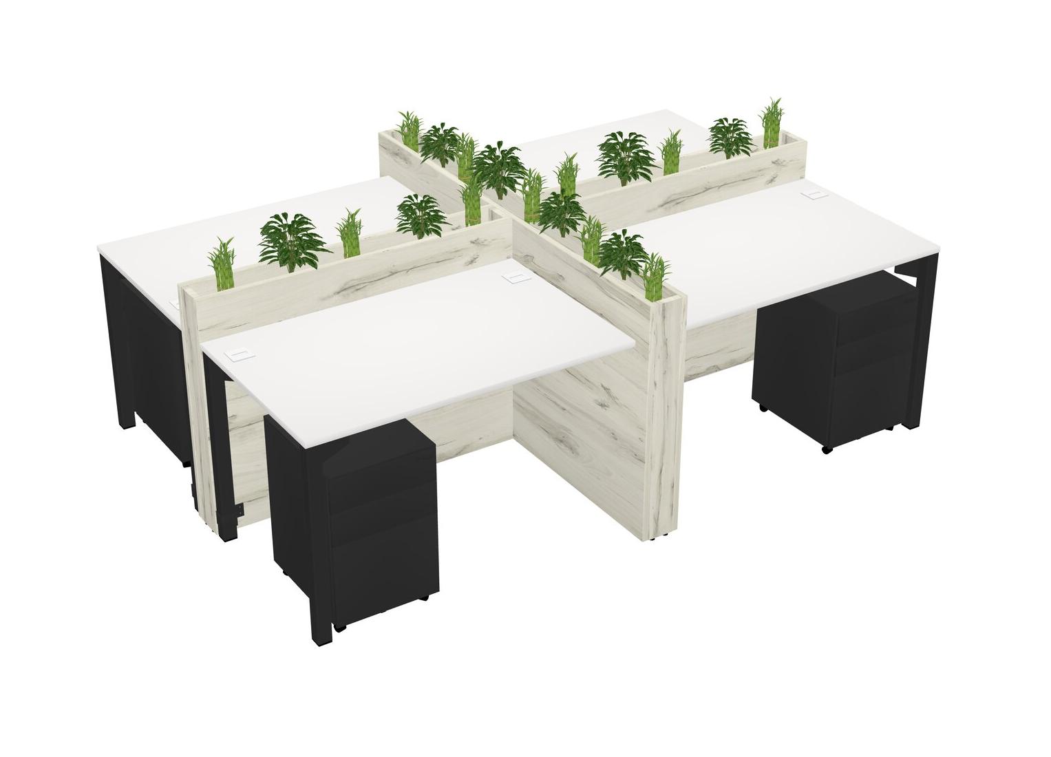White Rectangular Shared Office Desk For 4 Persons Let Nature Help Flourish Your Productivity The Base Comes With An Adjustable Shelf To Provide Space For Pots (Pots & Plants Sold Separately)