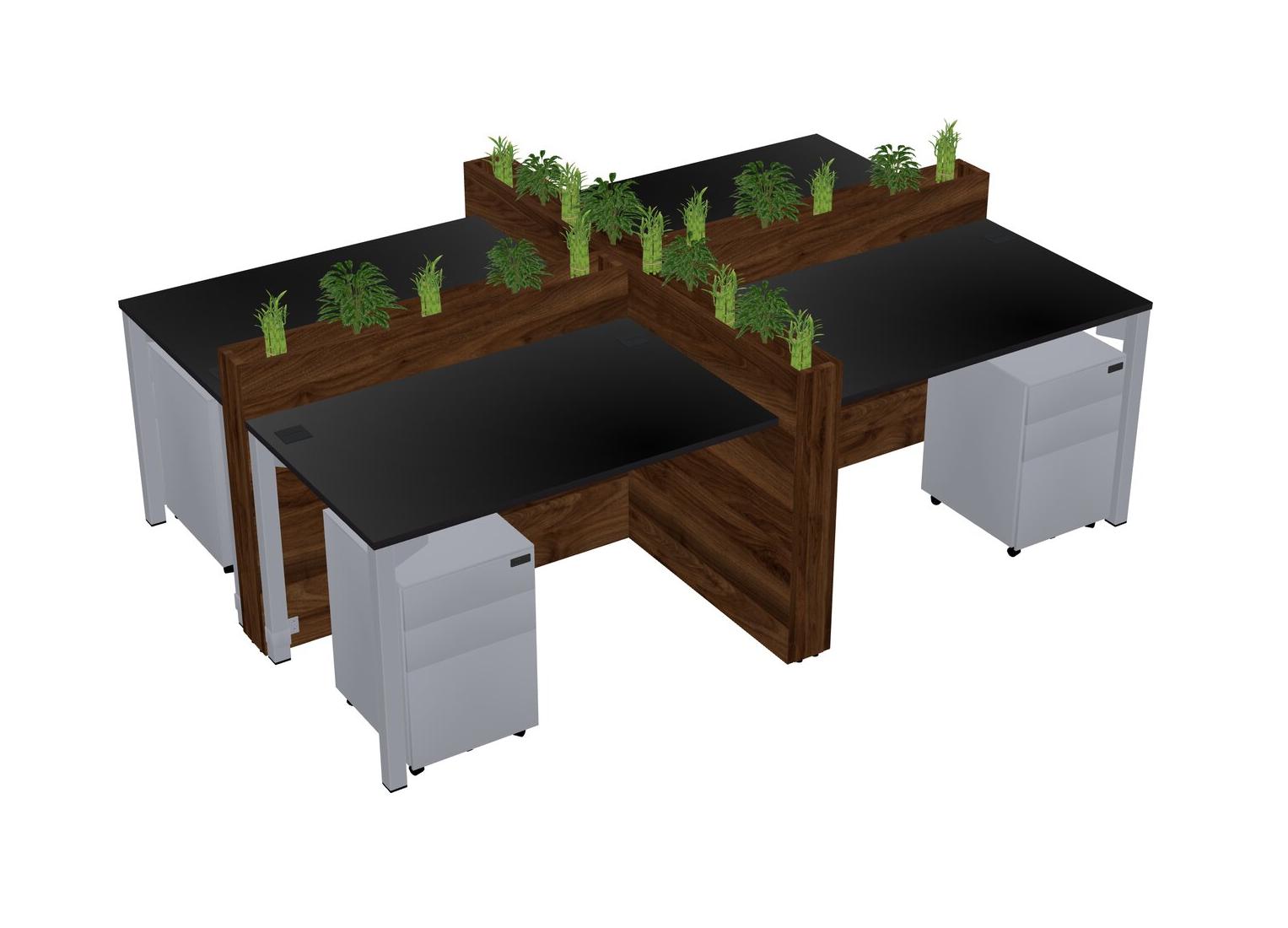 Black Rectangular Shared Office Desk For 4 Persons Let Nature Help Flourish Your Productivity The Base Comes With An Adjustable Shelf To Provide Space For Pots (Pots & Plants Sold Separately)