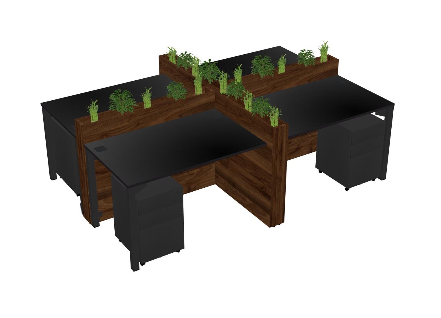 Black Rectangular Shared Office Desk For 4 Persons Let Nature Help Flourish Your Productivity The Base Comes With An Adjustable Shelf To Provide Space For Pots (Pots & Plants Sold Separately)