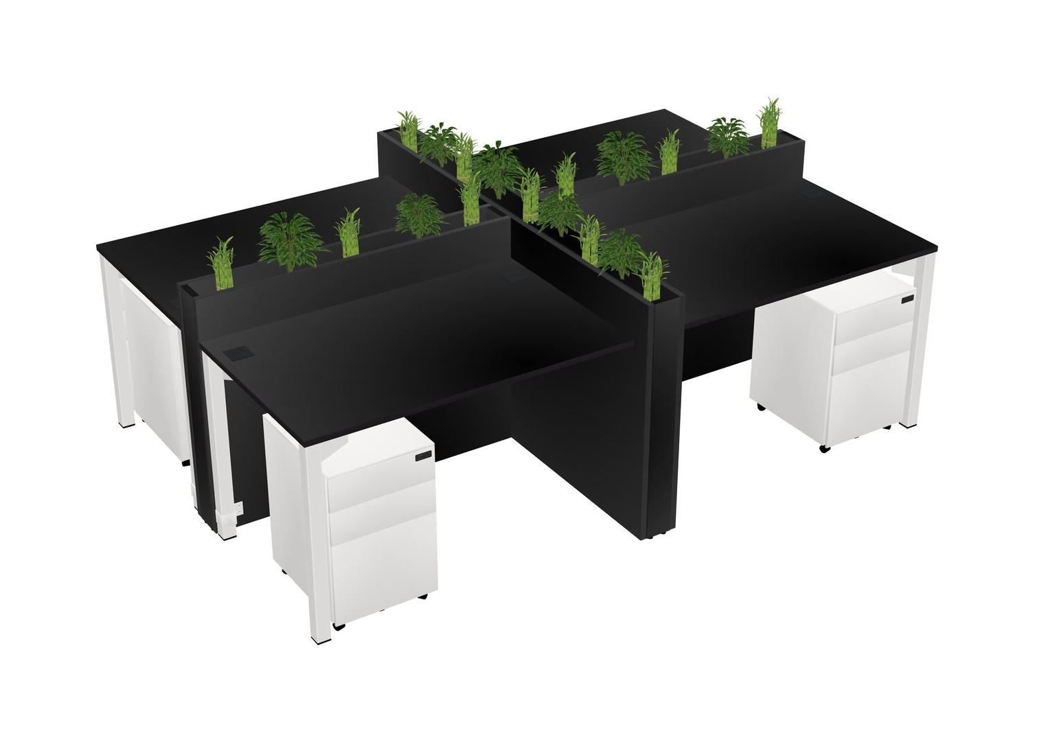 Black Rectangular Shared Office Desk For 4 Persons Let Nature Help Flourish Your Productivity The Base Comes With An Adjustable Shelf To Provide Space For Pots (Pots & Plants Sold Separately)