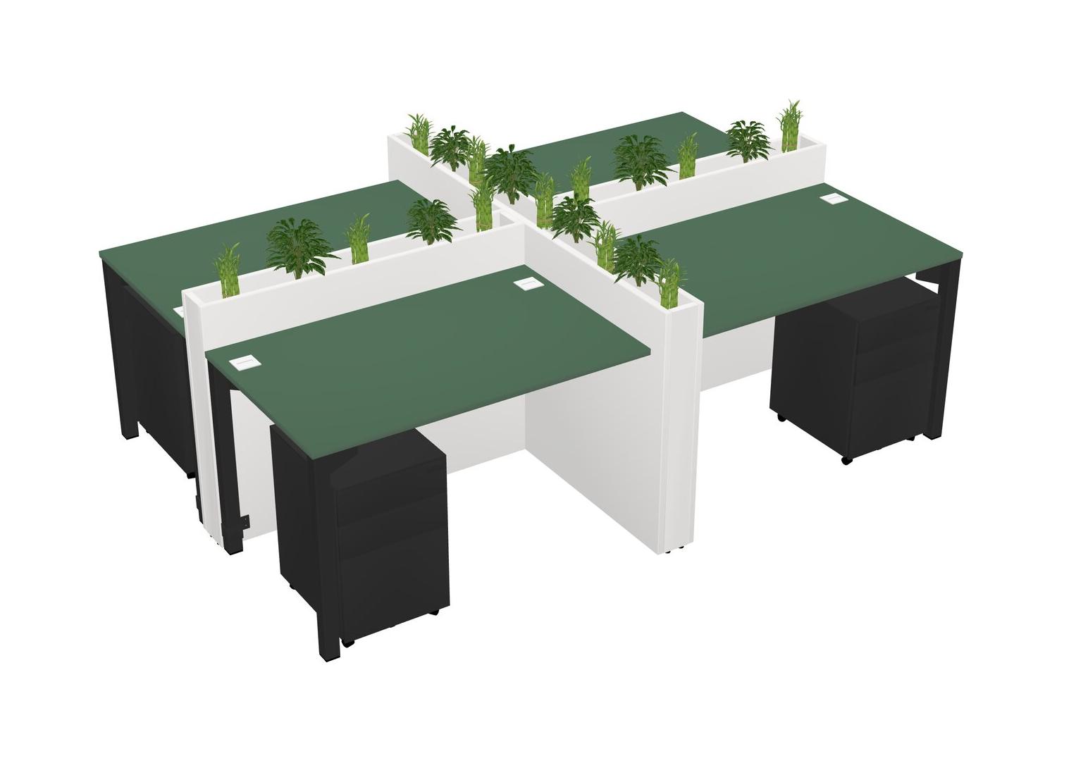Green Rectangular Shared Office Desk For 4 Persons Let Nature Help Flourish Your Productivity The Base Comes With An Adjustable Shelf To Provide Space For Pots (Pots & Plants Sold Separately)