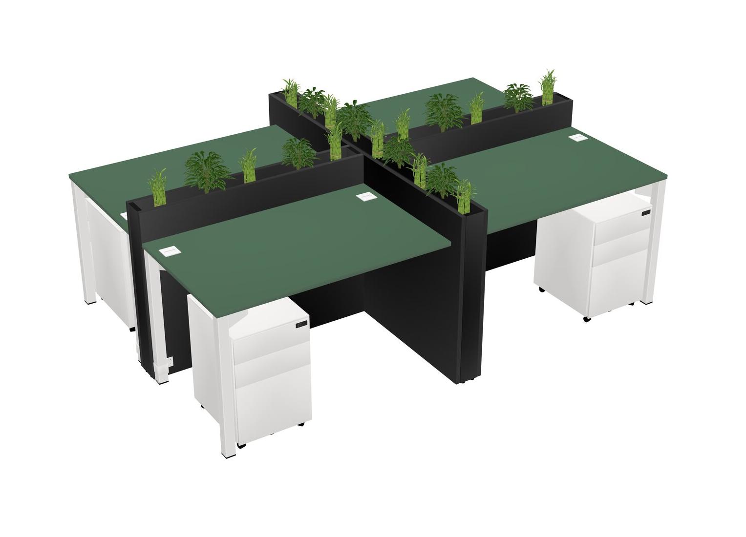 Green Rectangular Shared Office Desk For 4 Persons Let Nature Help Flourish Your Productivity The Base Comes With An Adjustable Shelf To Provide Space For Pots (Pots & Plants Sold Separately)