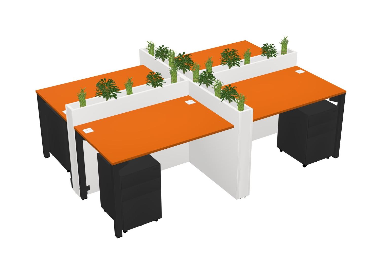 Orange Rectangular Shared Office Desk For 4 Persons Let Nature Help Flourish Your Productivity The Base Comes With An Adjustable Shelf To Provide Space For Pots (Pots & Plants Sold Separately)