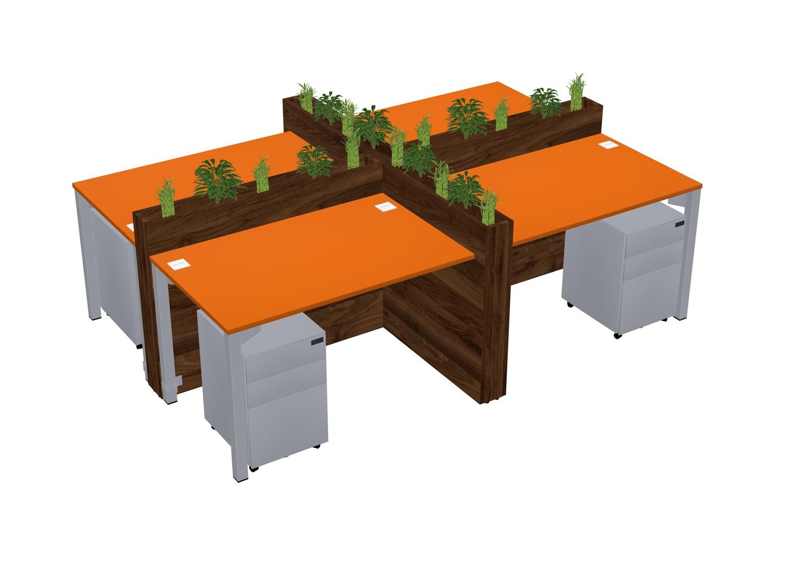 Orange Rectangular Shared Office Desk For 4 Persons Let Nature Help Flourish Your Productivity The Base Comes With An Adjustable Shelf To Provide Space For Pots (Pots & Plants Sold Separately)