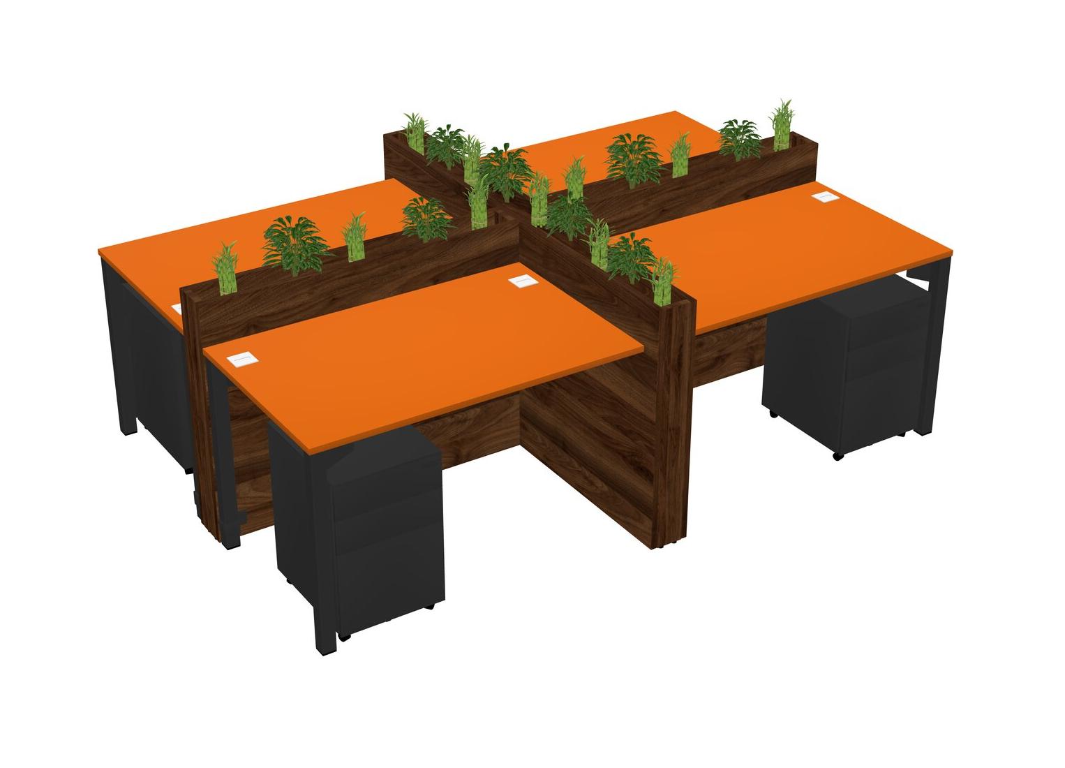 Orange Rectangular Shared Office Desk For 4 Persons Let Nature Help Flourish Your Productivity The Base Comes With An Adjustable Shelf To Provide Space For Pots (Pots & Plants Sold Separately)