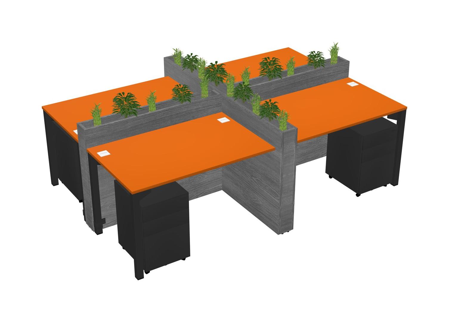 Orange Rectangular Shared Office Desk For 4 Persons Let Nature Help Flourish Your Productivity The Base Comes With An Adjustable Shelf To Provide Space For Pots (Pots & Plants Sold Separately)