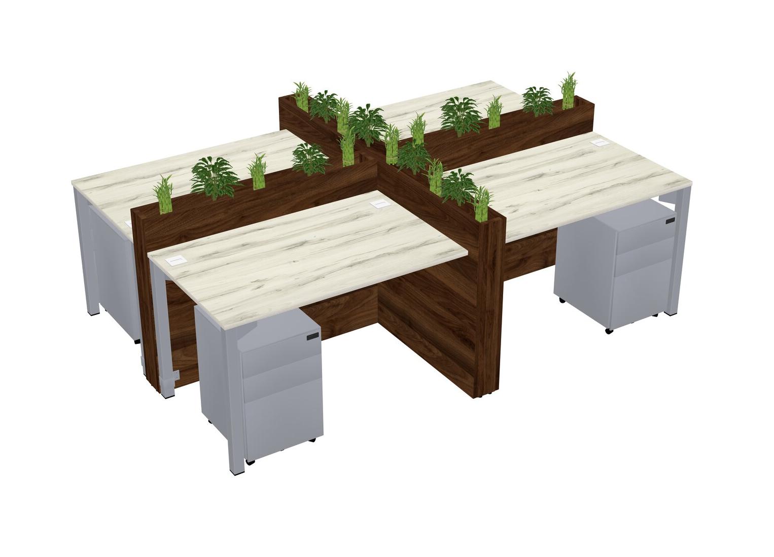 Heinne Holz Rectangular Shared Office Desk For 4 Persons Let Nature Help Flourish Your Productivity The Base Comes With An Adjustable Shelf To Provide Space For Pots (Pots & Plants Sold Separately)