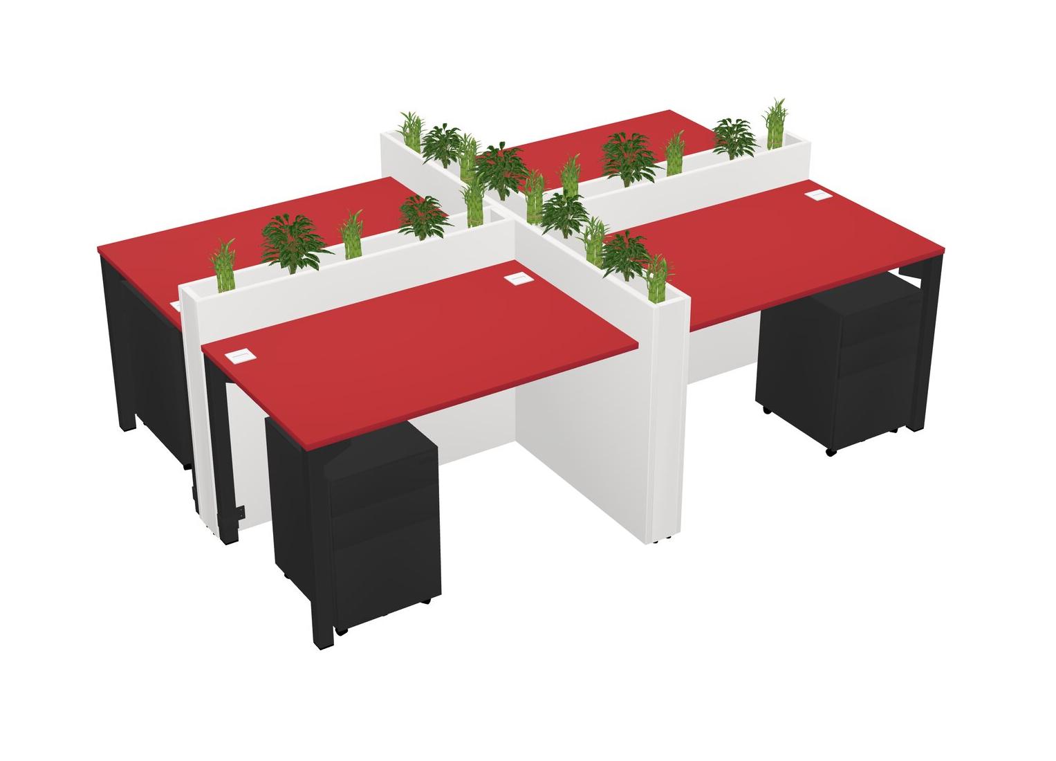 Prism Red Rectangular Shared Office Desk For 4 Persons Let Nature Help Flourish Your Productivity The Base Comes With An Adjustable Shelf To Provide Space For Pots (Pots & Plants Sold Separately)