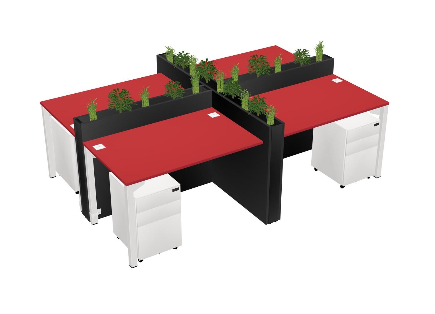 Prism Red Rectangular Shared Office Desk For 4 Persons Let Nature Help Flourish Your Productivity The Base Comes With An Adjustable Shelf To Provide Space For Pots (Pots & Plants Sold Separately)