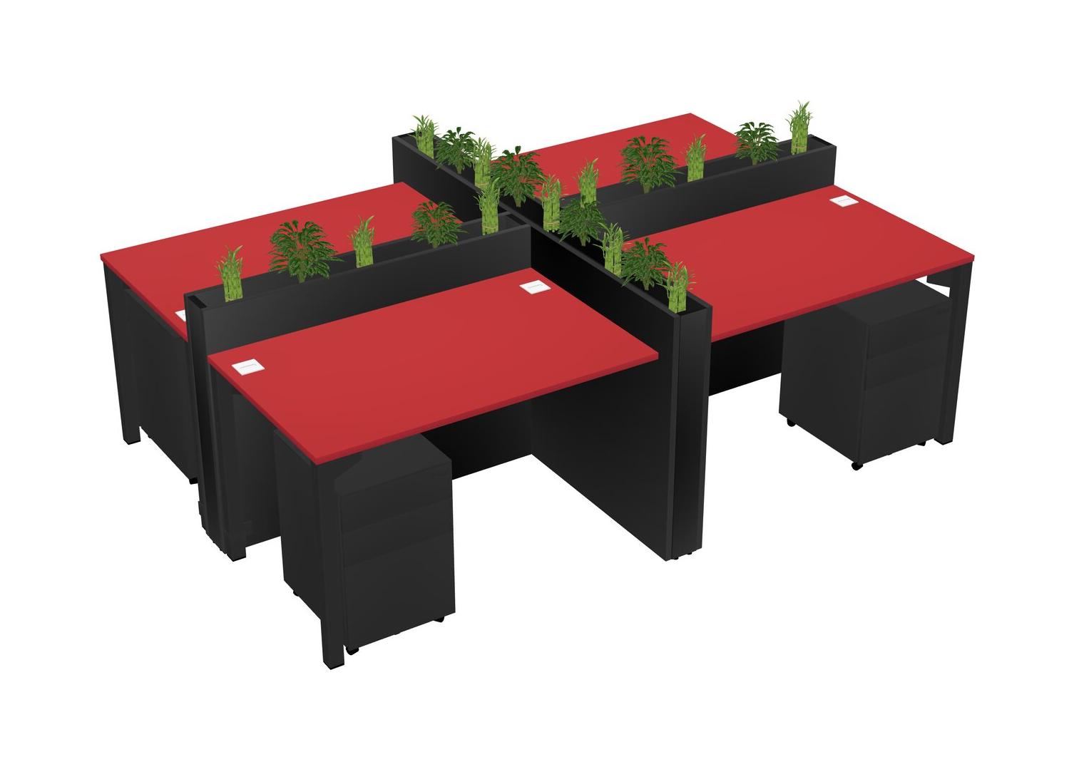 Prism Red Rectangular Shared Office Desk For 4 Persons Let Nature Help Flourish Your Productivity The Base Comes With An Adjustable Shelf To Provide Space For Pots (Pots & Plants Sold Separately)
