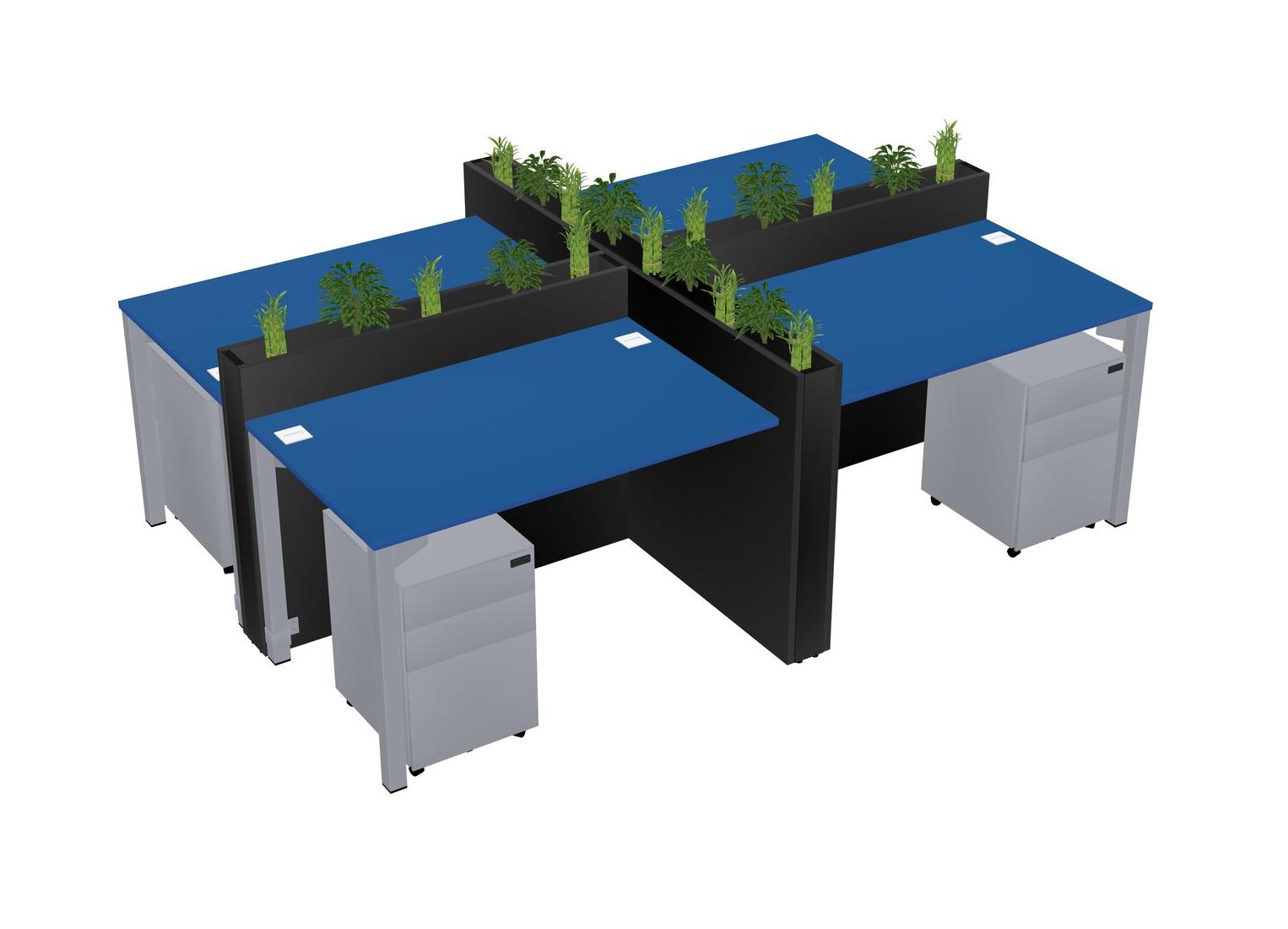 Prism Blue Rectangular Shared Office Desk For 4 Persons Let Nature Help Flourish Your Productivity The Base Comes With An Adjustable Shelf To Provide Space For Pots (Pots & Plants Sold Separately)