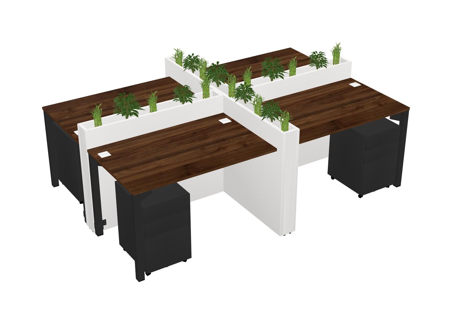 Columbia Walnut Rectangular Shared Office Desk For 4 Persons Let Nature Help Flourish Your Productivity The Base Comes With An Adjustable Shelf To Provide Space For Pots (Pots & Plants Sold Separately)
